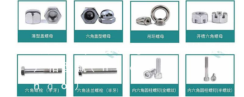 A2-70,A4-70,8.8級(jí),10.9級(jí)的六角螺栓,A2-70,A4-70,8級(jí),10級(jí)的螺母,標(biāo)準(zhǔn)GB5782,GB5783,GB6170,A2-70,A4-70,8.8級(jí),10.9級(jí)的螺柱,標(biāo)準(zhǔn)GB901都常用。還有就是石化標(biāo)準(zhǔn)也很常用,鋼結(jié)構(gòu)螺栓螺母墊片 螺栓按照性能等級(jí)分為3.6、4.8、5.6、5.8、8.8、9.8、10.9、12.9八個(gè)等級(jí),其中8.8級(jí)以上(含8.8級(jí))螺栓材質(zhì)為低碳合金鋼或中碳鋼并經(jīng)熱處理(淬火+回火),通稱高強(qiáng)度螺栓,8.8級(jí)以下(不含8.8級(jí))通稱